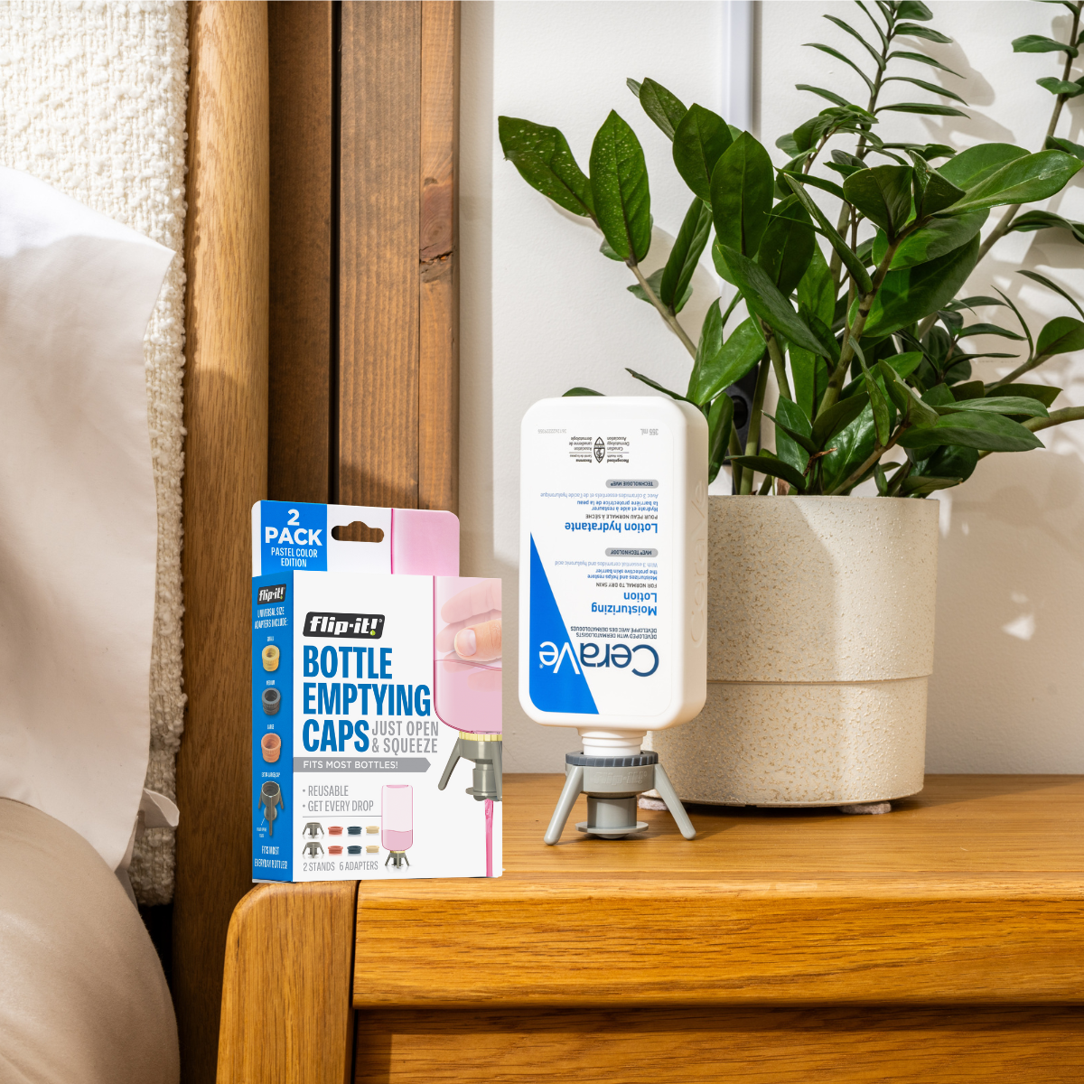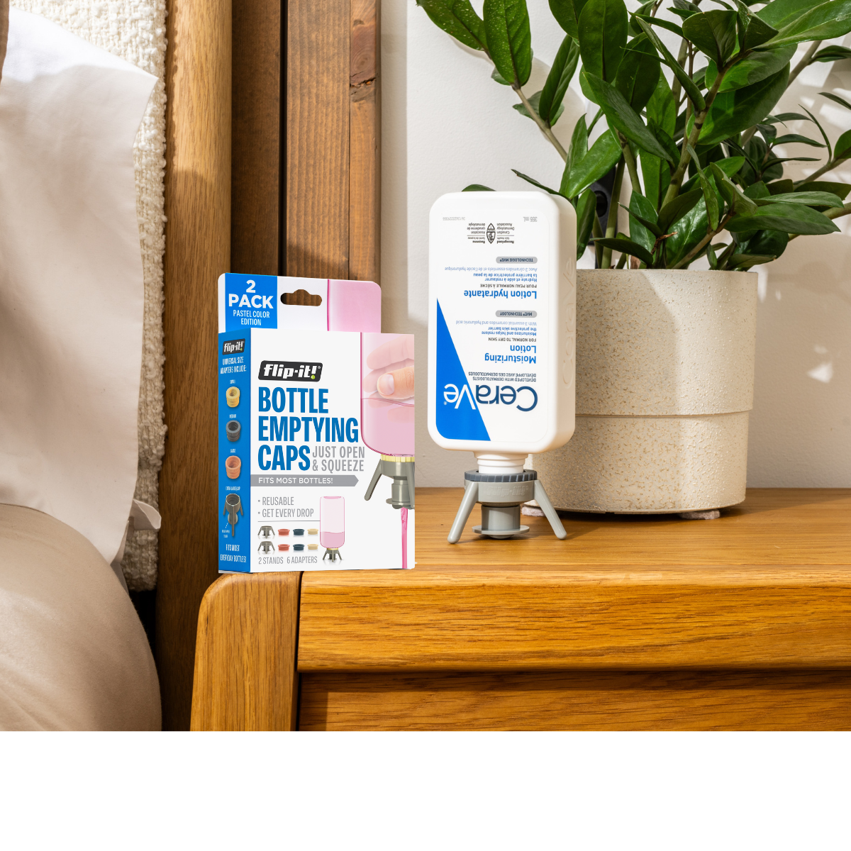 Flip-It! Cap is designed to help you get every last drop out of your pump and screw-top bottles, such as lotions, shampoos, conditioners, and more.